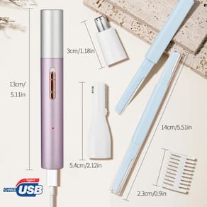 - Yunmiss O kit multiuso de barbeador de sobrancelhas e barbeador facial é criado para fornecer a você uma experiência abrangente de aparamento, garantindo a remoção precisa de sobrancelhas, pelos corporais, pelos do nariz, pelos das orelhas, pelos das pernas, pelos do queixo, pelos dos lábios superiores, pelos do pescoço, pelos da bochecha, penugem de pêssego, barba e pelos faciais dispersos. Se você está procurando retoques meticulosos ou limpezas completas, tenha certeza de que você sempre exalará confiança e exibirá um visual impecável