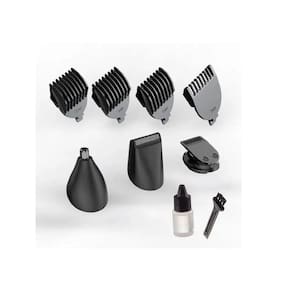 A Máquina de Corte 9 em 1 Black Titanium tem 05 pentes guia para ajudar no corte da barba e cabelo, sem contar no ajuste de altura da lâmina que vai de 0,8mm à 2mm. Ela possui ainda a lâmina Black Titanium que proporciona um corte com maior precisão.Com uma autonomia de até 45 minutos, sua Máquina de Corte pode ser usada com ou sem fio, pois conta com o sistema Cord-cordless. A base carregadora e organizadora tem carregamento por USB, levando em média 8 horas para a carga completa.