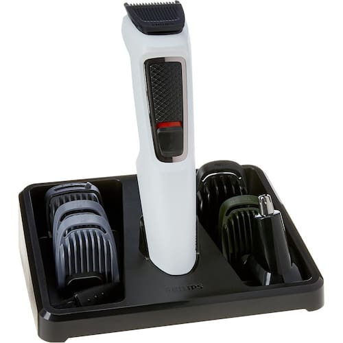 7 acessórios: Aparador, aparador de pelos para o nariz e orelhas, e 5 pentes de tamanhos diferentes Uso a seco: apenas a cabeça com as lâminas pode ser removida e lavada em água corrente Lâminas auto afiadoras: Elas tocam suavemente uma na outra afiando-se enquanto funcionam Suporte de armazenamento: Organize suas ferramentas, tornando seu aparador e acessórios sempre prontos para uso Fácil manutenção: nossas lâminas nunca precisam ser lubrificadas. Acessórios laváveis: basta desconectar e lavar as lâminas e os pentes em água corrente Aparelho bivolt e recarregável