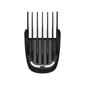 O kit inclui 10 acessórios para aparar barba, cabelo e pelos do corpo, além de aparador para nariz e orelhas. Os pentes variam de 0,5 mm a 16 mm, com ajustes de precisão para cada área do corpo, incluindo áreas íntimas.
