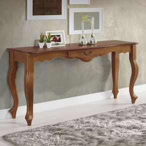 Madeira Maciça | MDFEste aparador para sala é perfeito para complementar a decoração da sua sala de estar ou sala de jantar. Produzido em Madeira Maciça com acabamento em verniz, materiais de alta qualidade e durabilidade, garantem que você possa desfrutar dele por muitos anos. O aparador de madeira possui 136cm de comprimento e pés estilo Luiz XV, adicionando um toque de elegância e sofisticação. A gaveta com puxadores metálicos oferece espaço para guardar objetos pessoais e itens de decoração, mantendo a sua sala sempre arrumada e organizada. Com design clássico e requintado é uma excelente escolha para quem procura estilo e funcionalidade e busca complementar a decoração do seu ambiente.