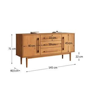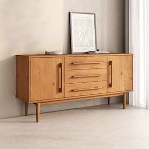 O Balcão Aparador Buffet de Madeira Tecca é a união perfeita entre funcionalidade e estética minimalista. Com 145 cm de largura, 2 portas laterais e 3 gavetas centrais, ele foi projetado para oferecer organização inteligente e visual impecável em qualquer ambiente.