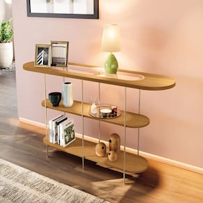 O Aparador de Sala com Prateleiras Pé em Metal 135cm Evan Cinamomo é fabricado com materiais de alta qualidade, proporcionando durabilidade e um acabamento refinado. Seu tampo superior apresenta detalhe usinado e um vidro embutido de 6mm, agregando sofisticação ao design. As duas prateleiras oferecem amplo espaço para objetos decorativos e outros itens. Os pés em aço maciço 3/8 com acabamento dourado proporcionam firmeza e resistência ao móvel. O Aparador Evan é complementado com 100% MDF, assegurando excelência e longevidade à peça. Unindo estética refinada e praticidade, este Aparador para sala é uma excelente escolha para quem deseja um móvel elegante e funcional para valorizar ainda mais sua decoração. Garanta agora mesmo!