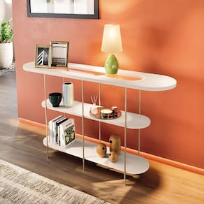 O Aparador de Sala com Prateleiras Pé em Metal 135cm Evan é fabricado com materiais de alta qualidade, proporcionando durabilidade e um acabamento refinado. Seu tampo superior apresenta detalhe usinado e um vidro embutido de 6mm, agregando sofisticação ao design. As duas prateleiras oferecem amplo espaço para objetos decorativos e outros itens. Os pés em aço maciço 3/8 com acabamento dourado proporcionam firmeza e resistência ao móvel. O Aparador Evan é complementado com 100% MDF, assegurando excelência e longevidade à peça. Unindo estética refinada e praticidade, este Aparador para sala é uma excelente escolha para quem deseja um móvel elegante e funcional para valorizar ainda mais sua decoração. Garanta agora mesmo!