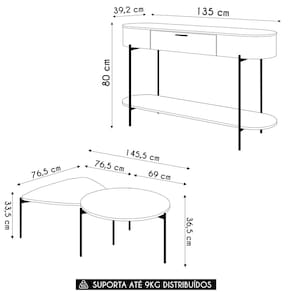 Peso Suportado Distribuídos:5 kg Aparador/4 kg Cada Mesa.