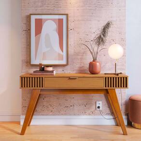 Diferenciais: Design inspirado no estilo retrô; Gaveta com amplo espaço interno; Ripas decorativas nas laterais em formando alto relevo