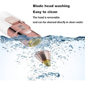 Este corpo removedor de pelos é à prova d'água e à prova de resping Duas cabeças de cortador podem ser facilmente retiradas e limpas com água corrente e mantidas com a escova incluída. Mas não mergulhe o depilador em água por um longo tempo para garantir o uso prolongado.