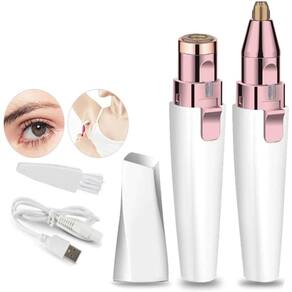 Este conjunto de removedor de pelos é composto com 2 tipos de cabeças, removedor de pelos faciais e aparador de sobrancelhas. Especialmente projetado para usar na sobrancelha, lábio superior e inferior, nariz, bochechas, queixo e pescoço. A lâmina de sobrancelha é recarregável por USB e pode ser conectada a fontes de alimentação e adaptadores. É ecológica e econômica.