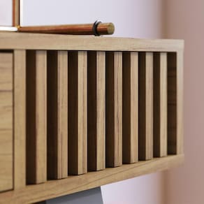 Aparador na cor Freijó Off White com acabamento brilhante.