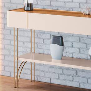Com detalhe orgânico como os cantos arredondados, esse aparador moderno é perfeito para enaltecer a decoração de qualquer ambiente, desde sala de estar, sala de jantar, hall de entrada, escritório e recepção, ou até mesmo como divisor de ambientes. Além dessa versatilidade, esse aparador estilo industrial também é muito funcional, já que oferece um amplo espaço sobre o tampo e prateleira inferior para expor objetos decorativos ou até mesmo para criar um cantinho do café elegante. Para completar a lista de atributos, delicadeza das laterais com filetes decorativos e os pés de aço maciço com acabamento em tom dourado adicionam um toque de elegância.