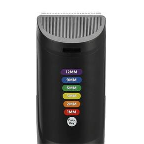 Equipado com 6 pentes diferentes com tamanhos indicados pela cor. Acompanha óleo lubrificante e escova para limpeza.