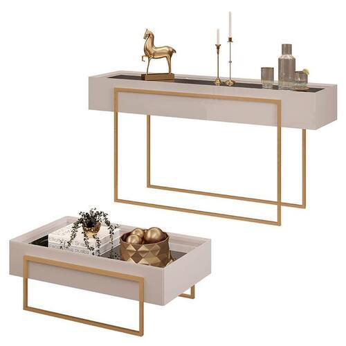 Começou a procurar móveis para sua sala? Então apresentamos para você este belo conjunto composto pelo aparador e a mesa de centro da linha Pilar. O aparador possui espelho aplicado sobre o tampo, laterais chanfradas e pés em metal na cor dourado. A mesa de centro em foi projetado para combinar com o aparador, com mesmas linhas modernas e sofisticadas. Tampo com espelho aplicado dando um toque refinado. As laterais chanfradas e os elegantes pés metálicos na cor dourado entregam requinte e praticidade. Fabricados pela DJ Móveis, são desenvolvidos em MDP/ MDF proveniente de madeira de reflorestamento, mostrando o compromisso com a sustentabilidade sem abrir mão da elegância. Sendo ideais para compor seu ambiente deixando mais sofisticado e acolhedor. Confira e aproveite!