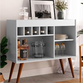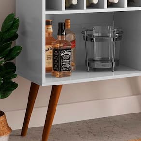 O aparador adega new odin - EJ MOVEIS possui um lindo design em movel compacto e charmoso, com pes de madeira palito retro, tampo superior estilo bandeja, adega com espaco para 5 garrafas com nicho para armazenamento e decoracao de acordo com sua criatividade. Pode ser utilizado em diversos ambientes de sua casa como sala de estar e jantar, bares, cozinhas, agregando assim modernidade e sofisticacao valorizando ainda mais sua casa.
