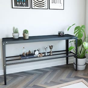 Os aparadores são grandes coringas na hora de decorar a casa. Posicionados no hall de entrada, na sala de estar ou combinados com mesas de jantar e cadeiras, eles conferem equilíbrio, organização e incrementam a ambientação. O aparador Rio é uma ótima solução para compor a decoração de espaços, também é uma ótima opção para apoiar fotos da família ou como suporte para adornos diversos. Acabamento: Pintura Acabamento da Prateleira: Pintura Ambiente Principal: Sala de Estar Complexidade da Montagem: Baixa: pode ser montado por uma pessoa sozinha Cor: Preto Fosco Cor do Produto: Preto Fosco Cor Interna: Preto Fosco Escala de Brilho: Fosco Escala de Brilho da Prateleira: Fosco Itens Inclusos: 1 Aparador rio e 1 manual de instrução. Linha ou Coleção: Rio Manual de Montagem e Instalação: https://cdn2.madeiramadeira.com.br/atributo/proa/855706-rio-aparador-110-e-150.pdf Material da Prateleira: Aço Material dos Pés: Aço Material Principal: Aço Necessita Montagem: Sim Origem do Produto: Nacional Pés Reguláveis: Não Peso: 27 kg Peso Máximo por Prateleira: 15 kg Possui Adega: Não Possui Bandeja: Bandeja não Removível Possui Espelho: Não Possui Gavetas: Não Possui Pés: 04 Possui Portas: Não Possui Prateleiras: 01 Possui Rodízio: Não Possui Vidro: Não Recomendações de Uso, Manutenção e Limpeza: Não utilizar abrasivos na limpeza. Evitar batidas e contato com objetos cortantes. Utilizar pano umedecido com água seguido de pano seco. Sapatas Niveladoras: Sim Sistema de Montagem: manual Suporta Até (kg): 30 kg