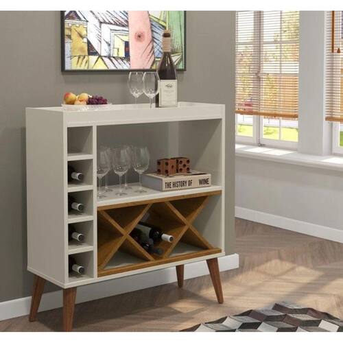 Aparador estilo retrô pés palito adega bar label - off white com freijó - comprar moveis em casa