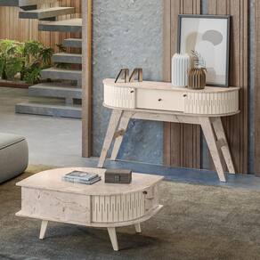 O Aparador Estoril e a Mesa de Centro Indianápolis trazem elegância e estilo à sua sala de estar. O Aparador Estoril, com duas portas curvas em MDF oferece autenticidade e sofisticação. Seu design inclui detalhes curvos no tampo e na base, uma gaveta com corrediças telescópicas, pés "palito" e puxadores de poliestireno em bronze, tudo em chapas de MDP de 15 e 25mm, com 136cm de largura. A Mesa de Centro Indianápolis, também com portas curvas em MDF, proporciona a mesma sofisticação. Com detalhes curvos no tampo e na base, pés "palito" e um puxador em bronze, é composta por chapas de MDP de 15mm e possui 90cm de largura, ideal para armazenamento de itens essenciais. Juntas, essas peças oferecem funcionalidade e modernidade à sua sala.