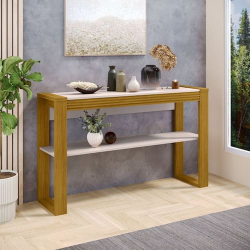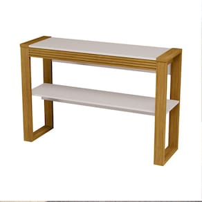 Transforme sua sala com elegância e funcionalidade. O Aparador Fazzio Stilo Carvalho Oro / Off White combina o charme do acabamento em madeira Carvalho Oro com detalhes Off White em pintura UV, produzidos em 100% MDF. Seu design moderno e versátil permite uso como aparador, bancada ou divisor de ambientes, harmonizando estilo e utilidade no seu espaço.