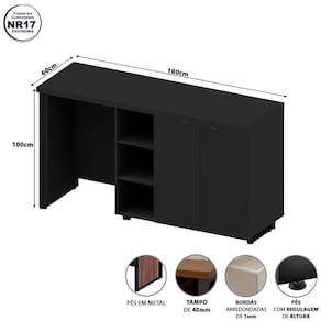 Produto dentro das normas para escritório, pois possui as bordas com os cantos arredondados (NR 17)