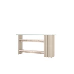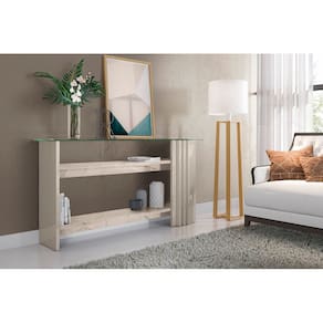 Possui 3 prateleiras, sendo 1 base em vidro, trazendo um visual mais leve e sofisticado. Produzido em MDP com revestimento em pintura DIP, entrega ótimo acabamento e durabilidade para uso interno.