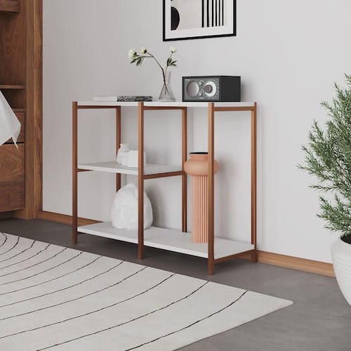 AS IMAGENS SÃO MERAMENTE ILUSTRATIVAS E PODEM SOFRER VARIAÇÕES DE COR E PEQUENOS DETALHES DE ACORDO COM O SEU MONITOR, ILUMINAÇÃO DO AMBIENTE E ATÉ MESMO A SUA PERCEPÇÃO VISUAL.Aparador Industrial Artesania Cobre e Branco 95cm