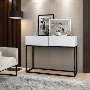 Imagine um móvel que combina o charme industrial com a elegância contemporânea. O Aparador Eros foi desenvolvido para quem busca praticidade sem abrir mão do estilo! Com 2 gavetas de corrediças telescópicas suaves, base em ferro Metalon robusta e acabamento preto sofisticado, é perfeito para organizar e decorar salas, escritórios ou áreas de jantar. Versátil, funciona como buffet, apoio ou escrivaninha impecável para o ambiente.