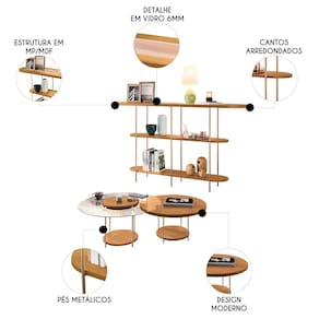 Conteúdo da Embalagem: 1 aparador, 2 mesas de centro.
