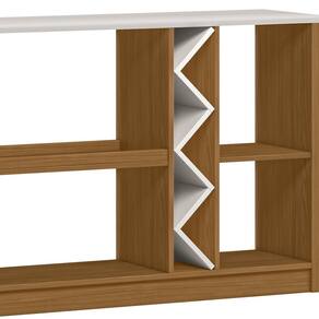ESPECIFICAÇÕES: Estrutura em MDF Pintura UV Tampo em MDF Vidro 3mm colado sobre o tampo Prateleiras Adega para garrafas