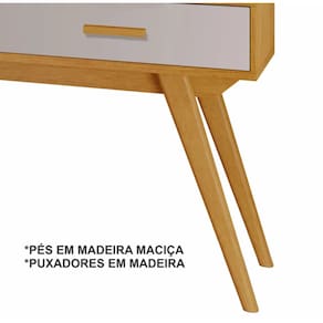Gavetas com corrediça telescópica Puxadores em madeira Pés em madeira maciça