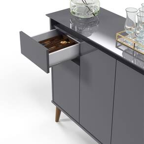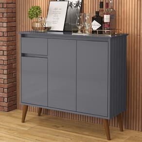Aparador Londres Cinza O Aparador Ideal para organizar e decorar seu ambiente, possui design diferenciado, que mistura sofisticação e modernidade, proporcionando um toque de elegância e sutileza ao seu ambiente, com pés de madeira palito retrô, tampo superior com detalhe fresado!
