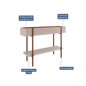 Característica: 1 Prateleira 4 Pés em metalon Acabamento em laca e pintura U.V Estrutura 100 MDF Frente com apliques 3D
