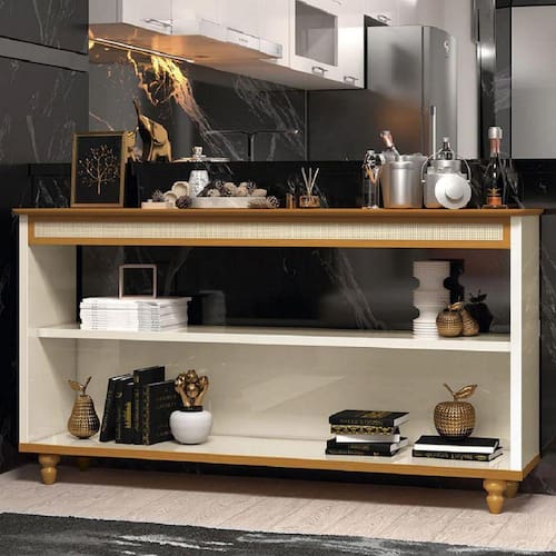 O Aparador Buffet Memphis possui design premium de alta qualidade, beleza e sofisticação. Indicado para complementar salas de jantar, salas de estar e até mesmo halls de entrada, dispõe de amplo espaço para objetos decorativos e pertences em geral. O acabamento em tela de Rathan sintético confere mais charme ao móvel, além dos elegantes pés em madeira maciça.