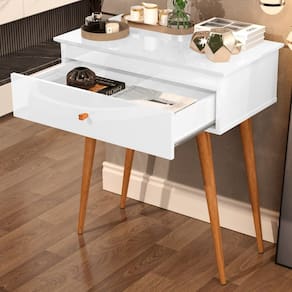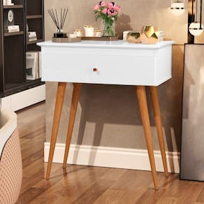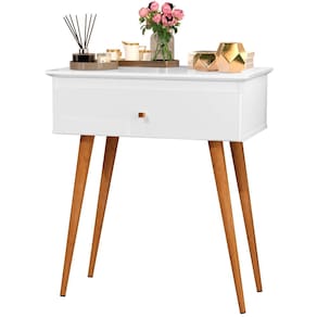 Especificações: - Produzido em MDP/MDF de 15 mm - Corrediças metálicas - Pés em madeira maciça estilo Retrô - Pés de 60cm - 1 Gaveta - Pintura UV - Vídeo de montagem