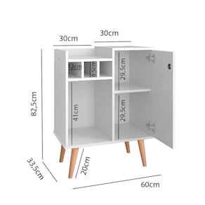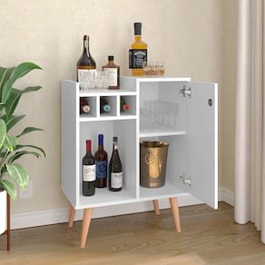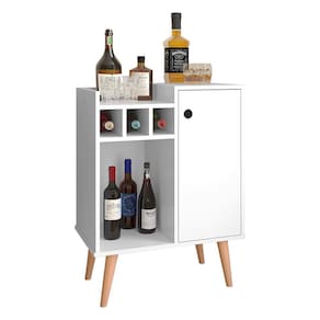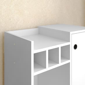 O móvel é composto por 3 adegas, prateleira interna e externa, 1 porta que dá acesso a um espaçamento interno e pés resistente a água, o que facilita na hora da limpeza.