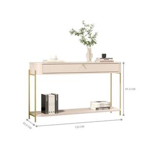 QUANTIDADES DE CAIXAS DE EMBALAGEM: 1 | PESO PRODUTO COM EMBALAGEM (KG): 14,4 | COMPRIMENTO DO PRODUTO (CM): 32,5 | QUANTIDADE DE GAVETAS: 1 | DESCRIÇÃO DO TAMANHO: 81,5x123x32,5 | ESTADO DE ORIGEM: SP | CORES DO PRODUTO (FILTRO DE CORES): Off White/Dourado | QUANTIDADE DE PORTAS: Não possui | PRODUTO PRECISA DE MONTAGEM?: Sim, a montagem é facil mas sugerimos a contratação de um montador para a montagem do produto. Não nos responsabilizamos por danos causados no ato da montagem. | COR PREDOMINANTE: Off White | COMPRIMENTO PRODUTO COM EMBALAGEM (CM): 7 | LARGURA DO PRODUTO (CM): 123 | PESO DO PRODUTO (KG): 13,9 | INSTRUÇÕES/CUIDADOS: Limpar com flanela ou pano macio seco, não utilizar produtos abrasivos, desengordurantes, álcool ou solvente. Não expor o produto diretamente à luz solar e à umidade | CONTEÚDO DA EMBALAGEM: Aparador | ALTURA DO PRODUTO COM EMBALAGEM (CM): 33 | PRODUTO: Aparador | MATERIAL PARA FILTRO: MDF | LARGURA PRODUTO COM EMBALAGEM (CM): 123 | ALTURA DO PRODUTO (CM): 81,5 | MATERIAL PRINCIPAL: MDF