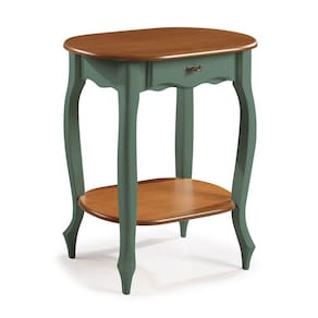 Aparador Oval em Madeira Maciça 1 Gaveta e Prateleira 1034 Linz Móveis - Verde Musgo/Imbuia Glazer