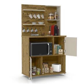 OaparadorparacantinhodocafédaPatrimartem um design moderno e exclusivo. Possui 12 ganchos para decorar com xicaras, 4 prateleiras para organização de potes de biscoito, bolachas e chocolates, e espaço para cafeteira. Possui 2 portas com compartimentos internos para organização de mais itens, além de 2 nichos aberto com espaço para microondas. Pensando na facilidade da limpeza e locomoção o produto temrodízios de siliconecom trava. Corra e adquira logo o seu!!