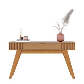 CARACTERÍSTICAS TÉCNICAS: - Produzido em MDP de 15mm, MDF de 15mm e HDF de 3mm - Acabamento Fosco/Brilho com Pintura UV - Gaveta com Corrediça Telescópicas - Puxador Metálico na cor Dourado Fosco - Pés em Madeira Maciça com 58cm de Altura - Detalhe Ripado Artesanal - Peso suportado no tampo de 10kg - Peso suportado na gaveta de 2kg - Possui 1 Gaveta
