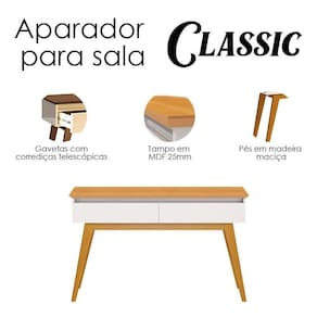 Apresentamos para você este belo aparador da linha Classic, uma peça elegante e funcional que combina sofisticação e praticidade. Com duas gavetas espaçosas, são perfeitas para guardar seus acessórios mantendo tudo organizado. As corrediças telescópicas garantem um deslizamento suave e silencioso. Seus pés em madeira maciça oferece mais estabilidade e dá um toque de elegância. Fabricado pela Imcal, é produzido em MDP/ MDF com materiais de alta qualidade garantindo mais durabilidade por muitos anos. O design clássico e acabamento impecável será uma experiência perfeita entre praticidade e qualidade. Confira e garanta o seu!