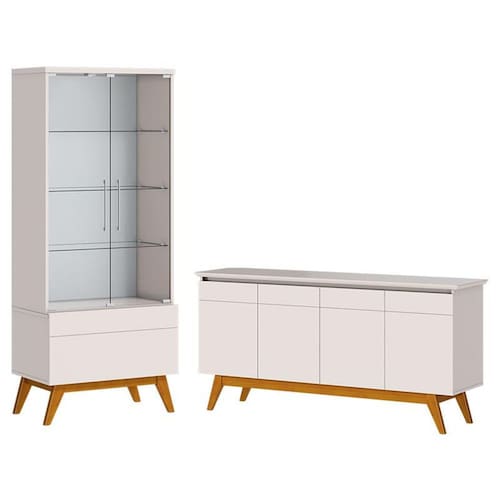 Aparador para Sala Buffet 1.6 e Cristaleira Classic Off White - Imcal
