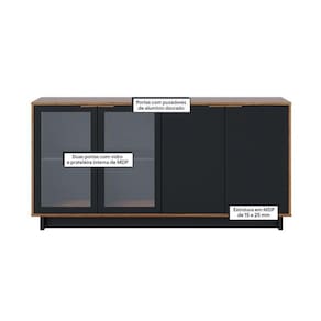 Aparador para Sala Buffet Ambiente Vitória Noce Milano Preto Acetinado Colibri