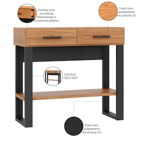 Além disso, as duas gavetas são ideais para organizar objetos, mantendo seu ambiente sempre arrumado, ao passo que o tampo e a prateleira inferiores são o cenário perfeito para exibir itens decorativos e aqueles detalhes que fazem toda a diferença, como flores, livros ou pequenos objetos de arte.