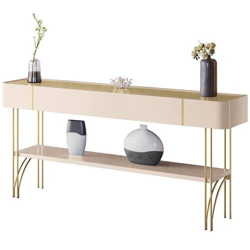 MDF | AçoAparador Para Sala de Estar Pés de Aço Gianni Off/Champanhe H01 - Mpozenato
