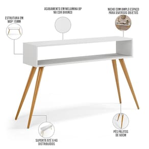 Características: Estrutura em MDP 15mm com acabamento em melamina BP. 04 pés palitos de 60cm. 01 nicho com amplo espaço para diversos objetos. Suporta até 6 kg distribuídos.