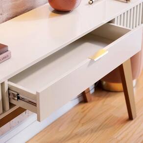 Sim, ele é o item ideal para complementar a decoração e eficiência do cômodo agregando sofisticação e muito charme! E o Aparador Valerie da Mpozenato é a personificação desse conceito! Ele possui pés em madeira maciça remetendo ao queridinho estilo retrô, que somando aos detalhes ripados nas extremidades conferem um design único e aconchegante. Ah, e também é um aparador para sala de estar com gaveta central de puxador dourado e amplo espaço para guardar seus itens, já o tampo pode abrigar objetos decorativos e diversos de sua preferência. Maravilhoso, né? Inclusive, é fabricado em MDP/MDF com acabamento em pintura UV para mais resistência e qualidade.