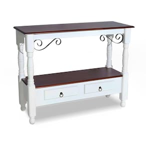 Aparador Com 2 Gavetas Pés Torneados 1028 Branco Laca e tampos Castanho Envelhecido -