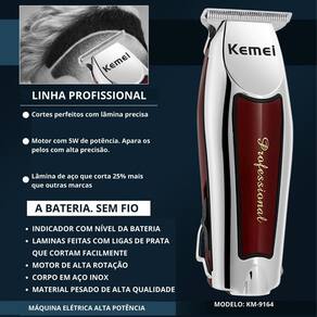 Esta máquina é da marca Kemei, uma marca muito promissora que vem fazendo produtos de ótima qualidade e com um preço justo focado no mercado brasileiro. A máquina possui qualidade e mais funcionalidades que muitas outras de marcas conhecidas, que custam o dobro, ou três vezes mais.