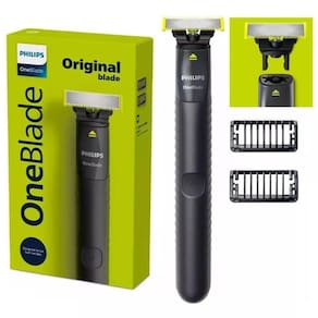 o philips oneblade é um novo modelador híbrido revolucionário para aparar, barbear e criar contornos e linhas clássicas em qualquer tipo de pelo. Esqueça as diversas etapas e ferramentas. O oneblade faz tudo. Apare:
