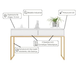 Comprimento: 87 cm | Marca: Casa H | Inclui manual de montagem: Sim | Profundidade: 37 cm | Modelo: Aparador Buffet Industrial | Largura: 110 cm | Quantidade de caixas de embalagem: 1 | Requer montagem: Sim Cor: Branco Dourado