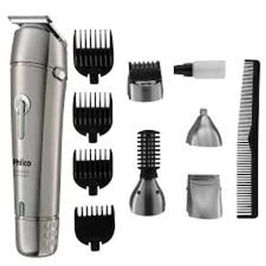 bivolt automático; lâminas laváveis; 5 cabeças para 5 tipos de corte; lâminas de aço; funciona sem fio; carrega na base; tempo de carga de 8h; autonomia de uso de 45min; a prova dágua; pode ser utilizado na pele seca, úmida e molhada; suporte para acessórios; óleo lubrificante e pente; acessório para corte de precisão; acessório para bigode, barba e costeletas; acessório rente a pele; acessório para o corpo; acessório de nariz e orelha; pentes para corte nos tamanhos 3, 6, 9 e 12mm para o cabelo; pentes para corte nos tamanhos 2,4,6 e 8mm para barba; pentes para corte nos tamanhos 3, 6 e 9mm para o corpo;