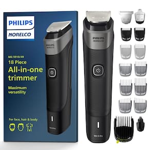 Aparador Philips Norelco Multigroom Series 5000 de 18 peças, aparador de barba, rosto, cabelo, corpo e pelos íntimos para homens — SEM ÓLEO DE LÂMINA MG5910/49